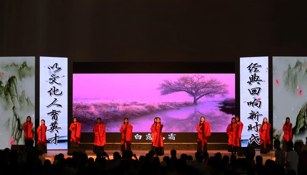 华夏五千年,二十四史间;名句千古颂,经典永流传。舞台上,师生们通过对每首诗词的细腻解读和用心感悟,运用富有节奏感、韵律美的语言,再现出一幅幅千年流传的文化画卷,唱响不朽的名篇,比赛现场伴随着琅琅诵读声,观众们的掌声也是此起彼伏,不绝于耳。