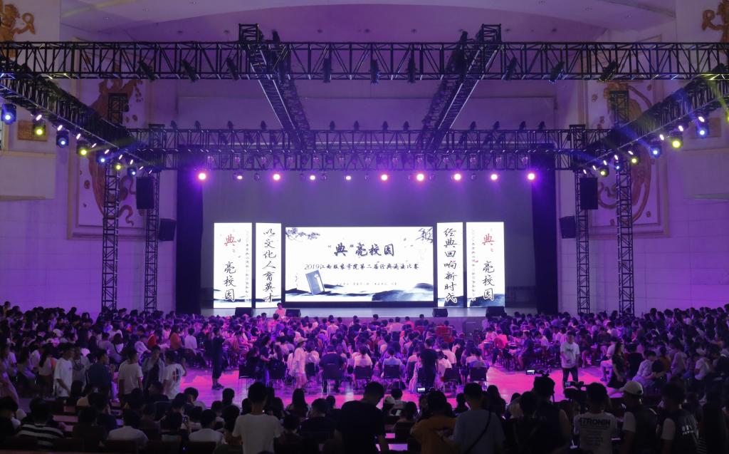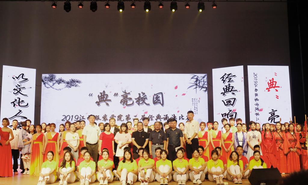 服装报讯(记者 刘雪晶)以文化人育英才,经典回响新时代。6月11日下午,由校党委学工部、团委主办的2019江西服装学院“‘典’亮校园”经典诵读大赛在霓裳宫上演。校理事长涂顺强、党委副书记高建国和2000余名师生一同观赏了这场酣畅淋漓的艺术大餐。校党委组织部部长陈翠娥、党委宣传部部长彭波、学工部(处)长张建荣、团委书记朱红担任评委。