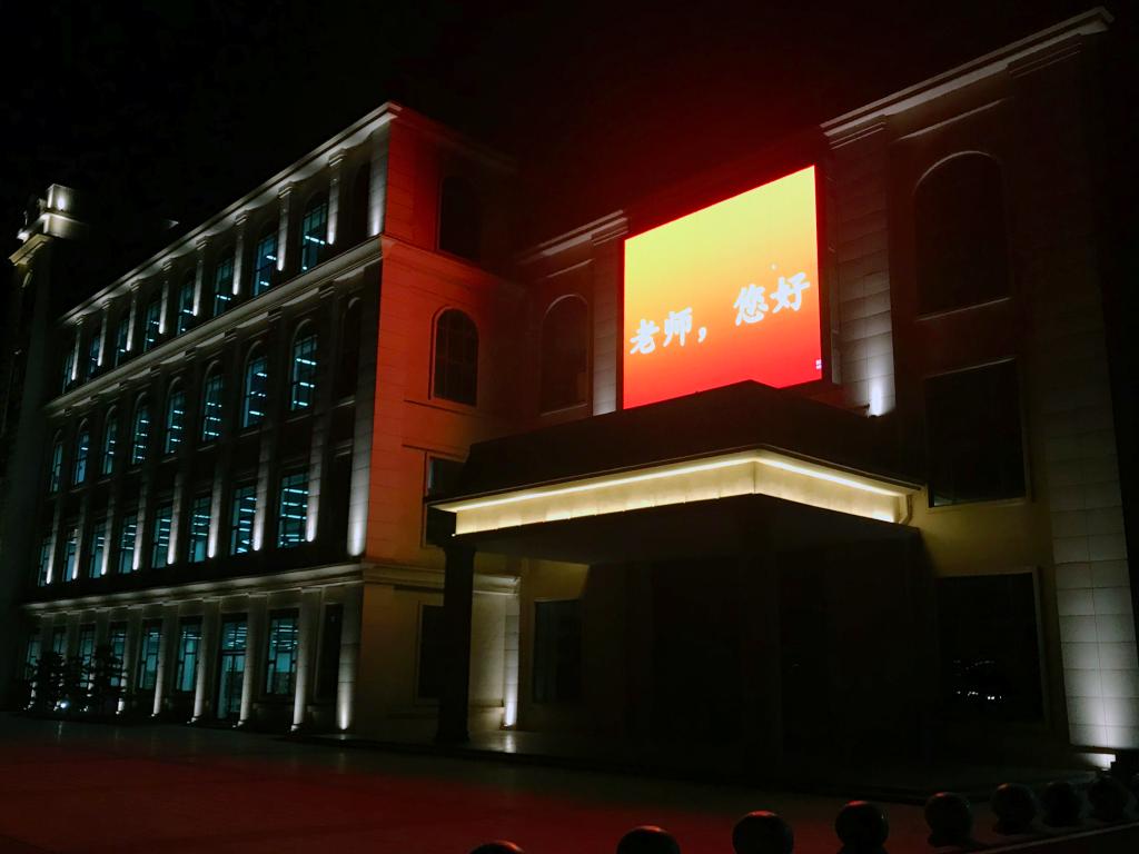 9月10日晚19:30—22:30时,我校开展了“为教师亮灯”活动,校内主教学楼、图书馆、艺术楼、思贤楼、实训中心等多处地标性建筑和多处室内的LED屏幕以字幕滚动方式深情道出“老师,您好!”“致敬教师”的字样。短短的标语,体现出了“让教师的荣光在最醒目位置闪耀”的人文情怀,表达了对老师的崇高敬意和真诚祝福,整座江服校园营造出了尊师重教的良好氛围。