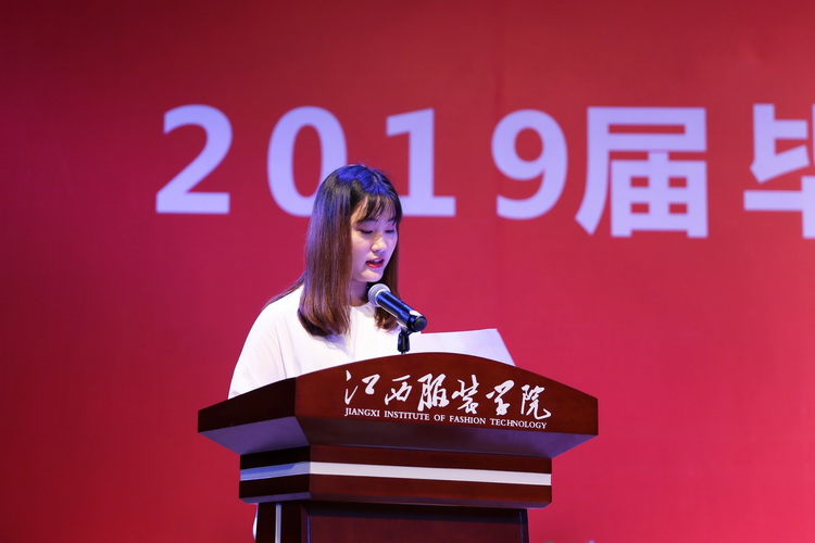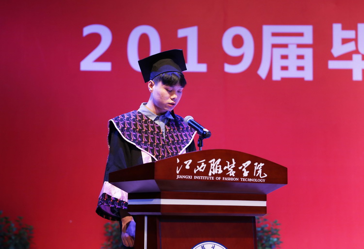 沉稳自信、获得新人奖的服装设计学院毕业生朱真港,学业出众、才华横溢的商学院毕业生丁铭作为毕业生代表上台发言。他们回顾了在学校生活的点点滴滴,表达了对老师的无限感激,流露出对校园的依依不舍,也展现出对未来的自信满满。