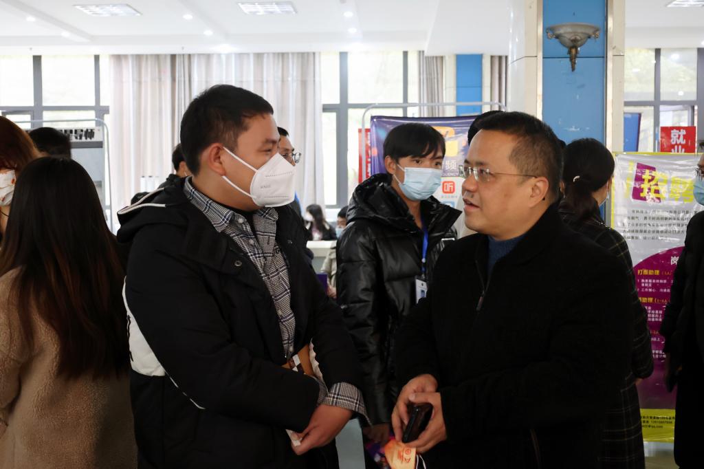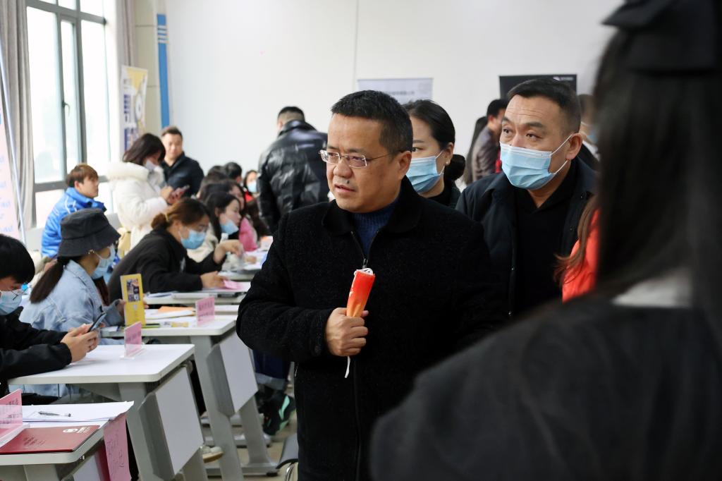 学校在加强就业市场建设的基础上,强化就业指导服务,以“留得下、留得住、发展好”为理念,推进校企深度合作,并积极宣传南昌“人才10条”政策,引导毕业生留赣留昌就业。双选会当日,理事长涂顺强,党委副书记、副校长李宝君来到招聘现场,与招聘单位工作人员和毕业生们亲切交流。涂顺强理事长详细了解了参会单位情况和2022届毕业生就业工作开展情况,对双选会的组织工作给予了充分肯定。他强调,要进一步加大就业工作力度,切实服务好用人单位,积极拓宽就业渠道、搭建就业平台,帮助毕业生顺利就业,尽早就业。李宝君副校长与工作人员亲切交流,了解企业招聘岗位需求以及人才待遇等情况。同时,他向毕业生询问就业择业情况,鼓励同学们树立正确就业观念,合理定位,积极就业。