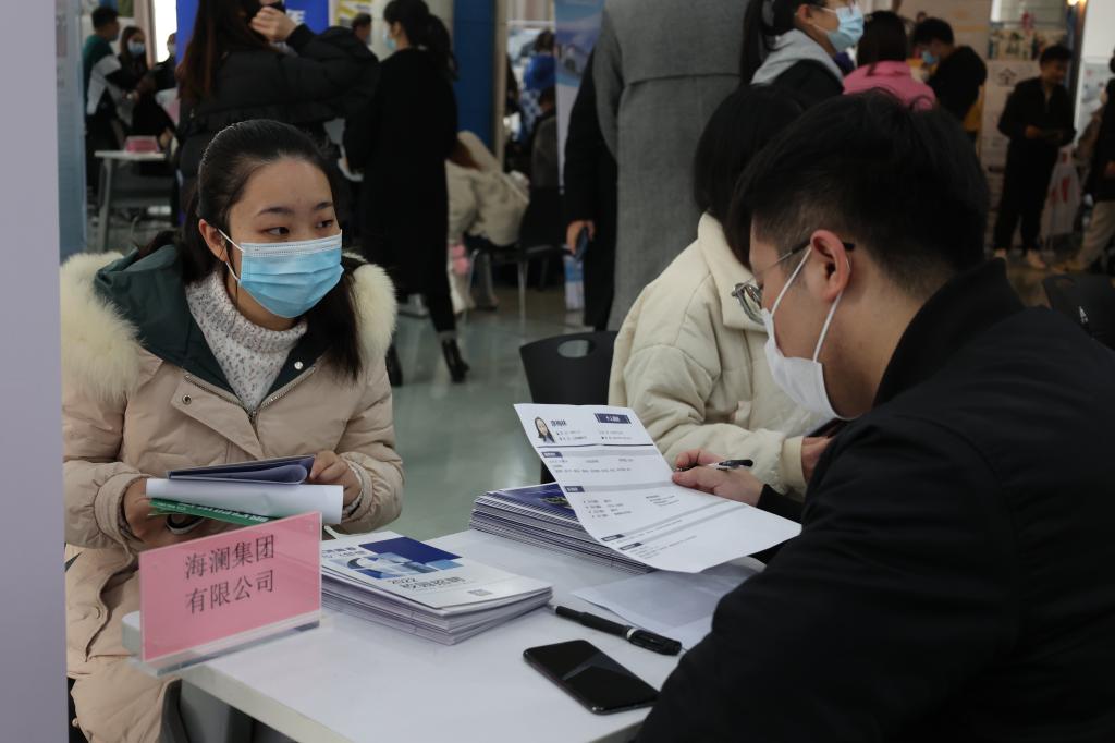 为了切实做到疫情防控常态化和开展校园招聘活动“两手抓”“两不误”,确保用人单位和师生身体健康和人身安全,学校招就处、学工处、保卫处、各学院等部门通力配合,从严从实做好疫情防控工作。双选会前,招就处汇总了企业的岗位需求,针对性地发给各个学院大力宣传,双选会当天,现场气氛热烈,学校安排工作人员、志愿者对企业代表和学生进行登记和扫码测温。学生们井然有序,自觉遵守学校防疫要求,全程佩戴口罩,分批次从思贤楼一楼大厅门口出示健康码、检测体温、扫码签到,应聘者们都手持自己精心准备好的自荐书和简历,满脸自信地穿梭于人流之中,积极与招聘人员交流,主动了解用人单位的情况。当前,毕业生就业难已成了不争的事实,但面对与日俱增的就业压力,我校毕业生依然心态轻松,并对找到工作充满信心。众多招聘单位对我校毕业生的综合素质和就业态度给予了高度评价,并希望与我校建立长期校企合作关系。