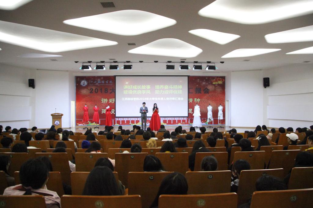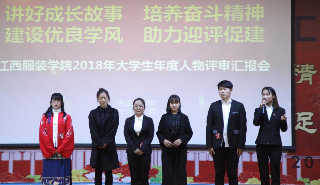 汇报完毕后,经评委认真评审,服装设计学院15服工实验本科班赵丽榕同学、艺术设计学院17广告本科1班吴其右同学、艺术设计学院16视传本科1班陈祥同学、服装设计学院15服饰本科2班廖政同学、艺术设计学院16视传本科1班戴泽荣同学、艺术设计学院15环艺本科3班宋佳蓉同学、服装设计学院15服饰本科2班王苏同学、服装工程学院15服设本科1班徐梦翔同学、商学院16国贸本科1班潘丽丽同学、时尚传媒学院16播音本科2班刘影同学被评为2018年大学生年度十佳人物;时尚传媒学院16广播电视编导1班荣泽阳同学、服装工程学院17服工本科2班唐雨莉同学、服装设计学院16服饰本科2班刘必娟同学、商学院17国际商务本科1班陈萨仁同学、服装设计学院17时装专3班武紫彤同学获得江西服装学院2018年大学生年度人物提名奖;服装工程学院15服工本科实验班周梦飞同学、服装工程学院15服设本科2班王乐同学、时尚传媒学院16摄影本科2班谢素晴同学、商学院17财管本科5班丁雨晨同学、时尚传媒学院16播音本科2班马瑛同学、艺术设计学院16数媒本科2班王飞同学获得江西服装学院2018年大学生年度人物入围奖。