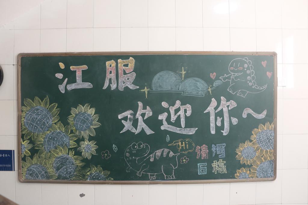 一进入宿舍楼,便看到宿管阿姨和楼管会为新生们创作的一幅幅精美的黑板报,表达对新生们的热烈欢迎,让新生感受到了回家般的温暖。