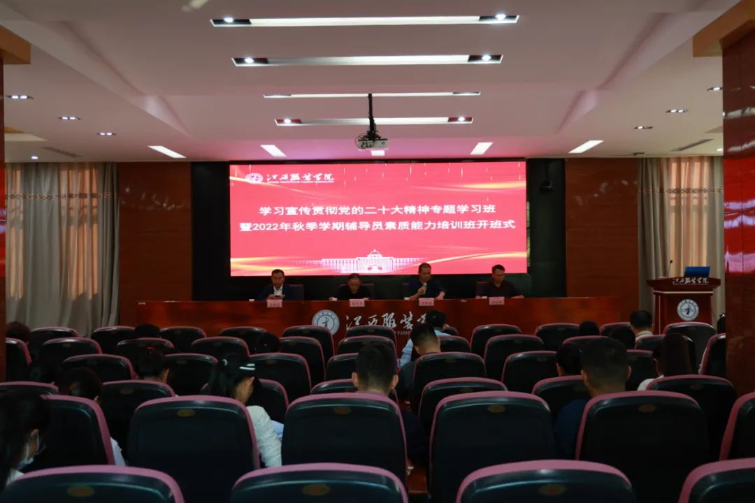 新闻中心讯(供稿:学工处)为深入学习宣传贯彻党的二十大精神,落实中共中央、国务院关于加强和改进新形势下高校思想攻治工作部署及辅导员队伍建设的工作要求,切实加强我校辅导员队伍建设,提升辅导员政治理论水平、专业素养和职业能力,增强学工队伍的凝聚力、战斗力和创造力。11月11日我校在行政楼一楼报告厅举行“学习宣传贯彻党的二十大精神专题学习班暨2022年秋季学期辅导员素质能力培训班”开班仪式。党委书记陈付龙出席会议。宣传部、学工部负责人,各学院党总支书记(副)、学工办主任(副)、全体辅导员和部分学生代表参加会议。会议由校党委副书记唐新强主持。