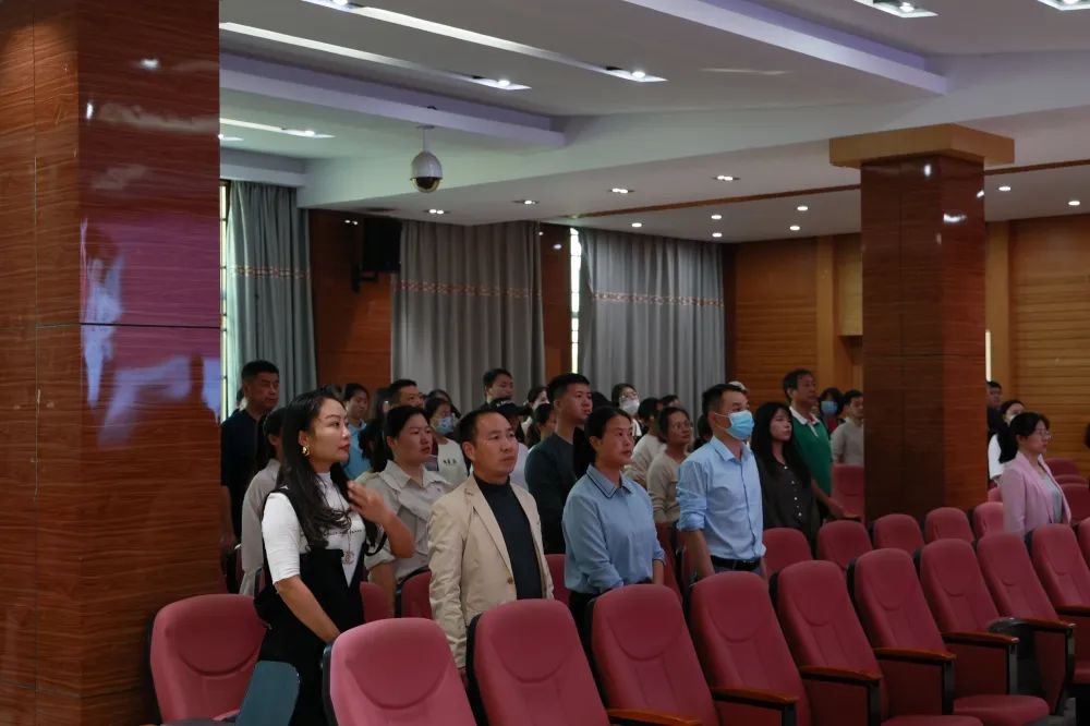 会议在慷慨激昂的国歌声中拉开帷幕。随后,学工处处长邓良峰解读了《2022年下半年辅导员培训方案》。辅导员培训通过“专题报告”“学工沙龙”“业务提升”“活动实践”等形式开展,其中“专题报告”以专家讲授为主,内容涵盖了“党的二十大精神解读”和辅导员九大职业能力的培养与提升;“学工沙龙”紧密围绕学生工作的重点难点问题,结合优秀辅导员事迹,以每个学院每月一个主题的形式加强工作交流;“业务提升”主要是以提升辅导员实际工作技能为主要目的,外派辅导员参加省内外各种培训,开阔工作视野、加强交流合作;“实践活动”主要是通过辅导员素质拓展训练、辅导员素质能力大赛、特色活动观摩展示、主题班会现场实施等平台,引导辅导员提高解决实际问题的能力等。