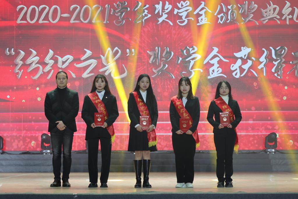 颁奖典礼现场,对我校2020—2021学年取得优异成绩、无私奉献、励志向上的优秀学生进行了表彰,为获得“纺织之光”奖学金、润华奖学金、国家励志奖学金、国家奖学金等学生分别进行了颁奖。