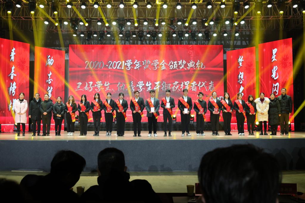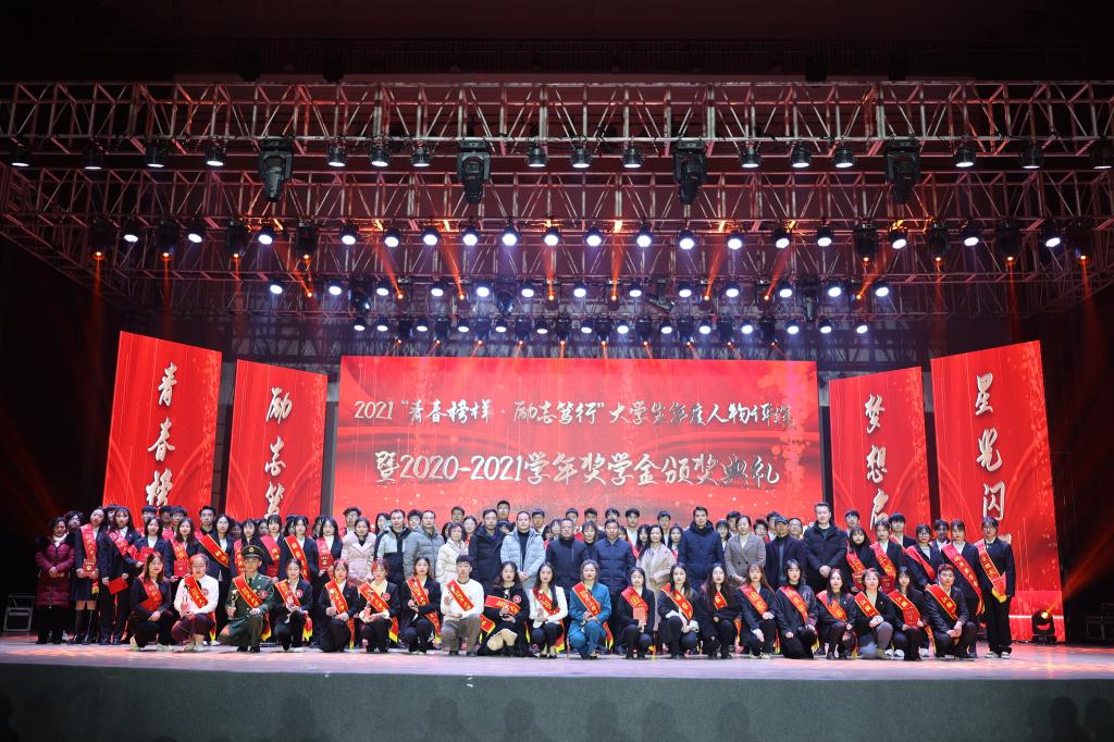 (新闻中心讯)12月28日下午,我校在霓裳宫举行2021“青春榜样·励志笃行”大学生年度人物评选暨2020-2021学年奖学金颁奖典礼。理事长涂顺强、校长薛家宝、副理事长涂燕萍、刘副校长、校党委副书记唐新强、校长助理马国照、校区建设委员会副主任胡放等校领导出席活动。教务处、科研处、学工处、校团委等职能部门负责人及各学院的领导、老师以及学生代表共计1500余人参加了此次活动。