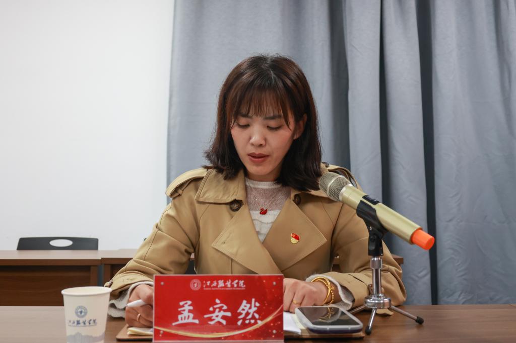 校团委书记孟安然表示,作为新时代的一名基层党员、共青团干部,我们生在红旗下,长在春风里,我们艰苦过,我们也幸福着,我热爱我的祖国,热爱中国共产党。我们要肩负起历史使命,抱有远大理想、努力提高自身素养、调整好自己的心态、摆正好自己的位置、要有能吃苦耐劳的精神、有责任感,并且树立终身学习的观念,通过不断的学习来适应社会,我将不断强化自身工作能力,不断增强学习的主动性、创造性,团结和带领广大共青团员和青年学生在伟大建党精神引领和感召下,不负韶华,奋发向上,心念习近平总书记对青年的嘱托,紧跟党的步伐,一步一个脚印,怀抱梦想又脚踏实地。我们生逢其时,我们施展才干的舞台无比广阔,实现梦想的前景无比光明,我们乘风破浪,必将行稳致远。