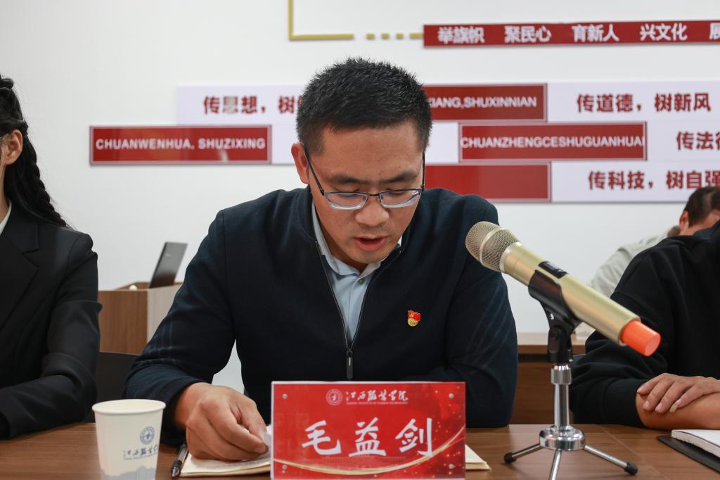 唐新强强调,党的二十大报告将教育、科技、人才、创新对全面建设社会主义现代化国家的重要性提升到了前所未有的战略高度,我们要明白不管公办,还是民办,都是党办,要担负起新时代赋予的历史使命,把学习宣传贯彻党的二十大精神同培养堪当民族复兴大任的时代新人结合起来,同学校改革发展、教育事业结合起来,努力做好本职工作,努力办好人民满意的教育,为党育人、为国育才,为把江服早日办成特色鲜明的高水平应用型大学、办好人民满意的教育做出一名思政工作者、党务工作者应有的贡献。