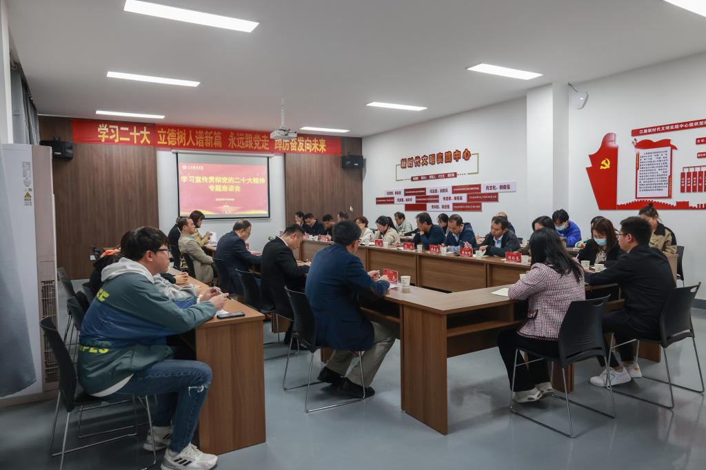 新闻中心讯(文/龙瑞行 图/黄保植)11月4日下午,江西服装学院在新时代文明实践中心召开学习宣传贯彻党的二十大精神专题座谈会。会议深入学习贯彻党的二十大精神、习近平总书记重要讲话精神和《中共中央关于认真学习宣传贯彻党的二十大精神的决定》,师生代表围绕学习宣传贯彻党的二十大精神,畅谈了学习感想和体会。校党委书记陈付龙出席会议并讲话,党委宣传部、马克思主义学院、校团委主要负责人,各学院党总支书记、思政课教师代表、网评员代表、辅导员代表、学生代表参加会议,会议由校党委副书记唐新强主持。