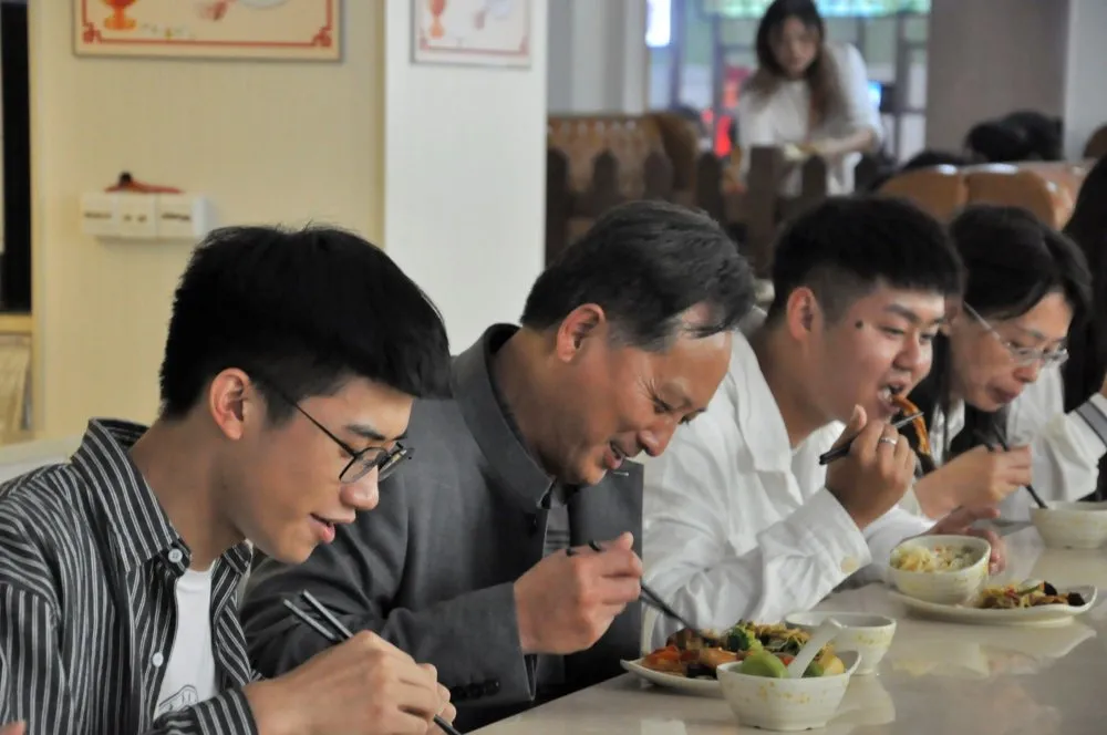 中午,陈东生来到食堂和学生共进午餐,“你是哪里人?”“饭菜合不合口味?”“以后考研还是就业?”……陈东生耐心询问同学们的生活情况,一边吃着饭,一边就和同学们聊开了。
