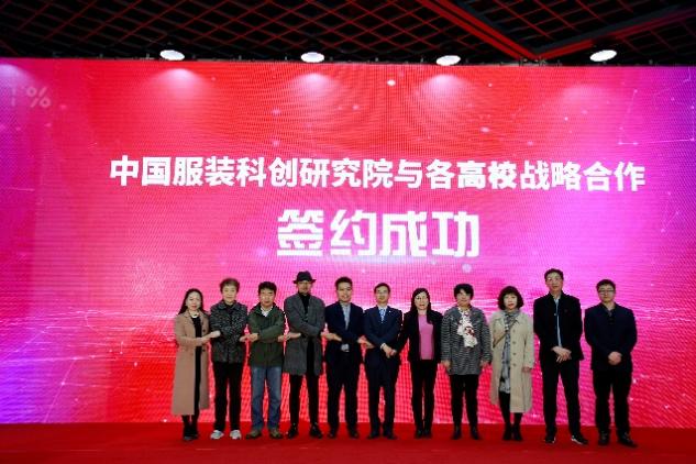 在揭牌仪式上,中国服装协会副秘书长兼科技部主任、中国服装科创研究院副院长杜岩冰与我校及东华大学、江南大学、北京服装学院、西安工程大学、苏州大学、天津工业大学、中国纺织建设规划院等八所高等院校和科研机构签订了合作协议,这些科研院所将与中国服装科创研究院共建研究生工作站或培训基地。