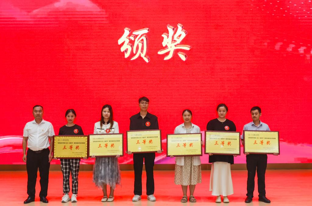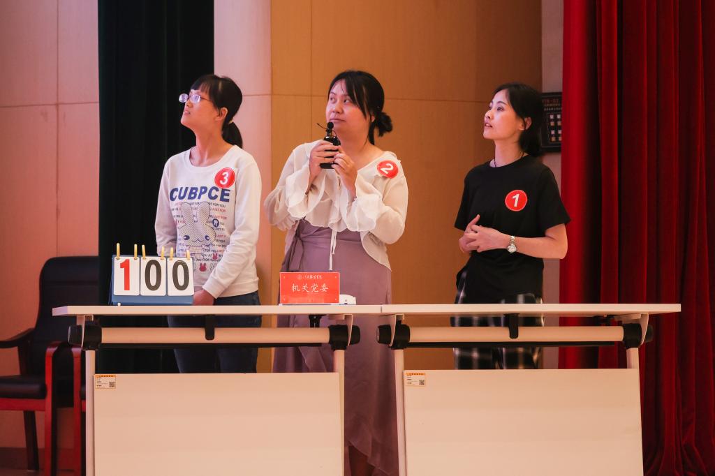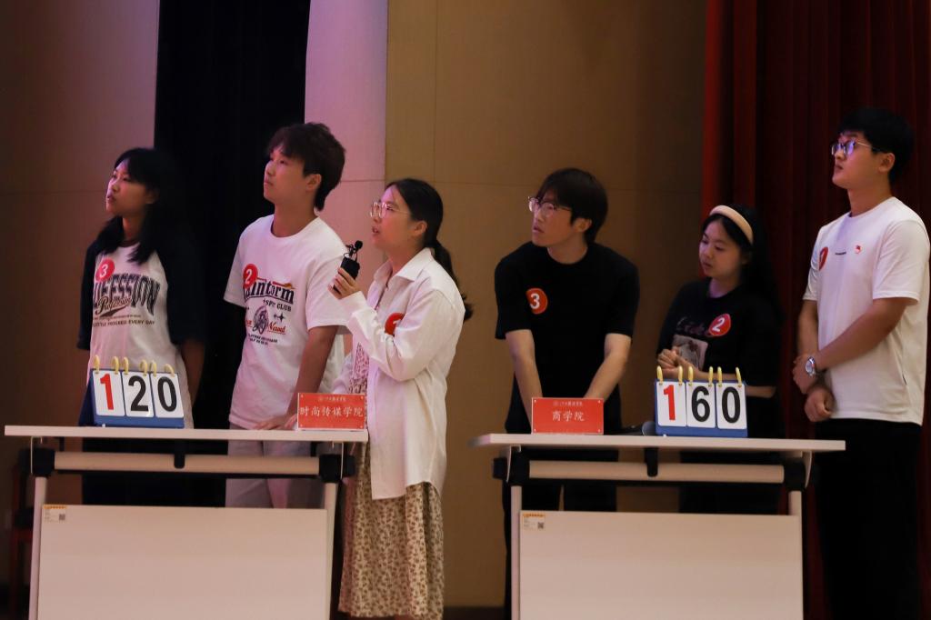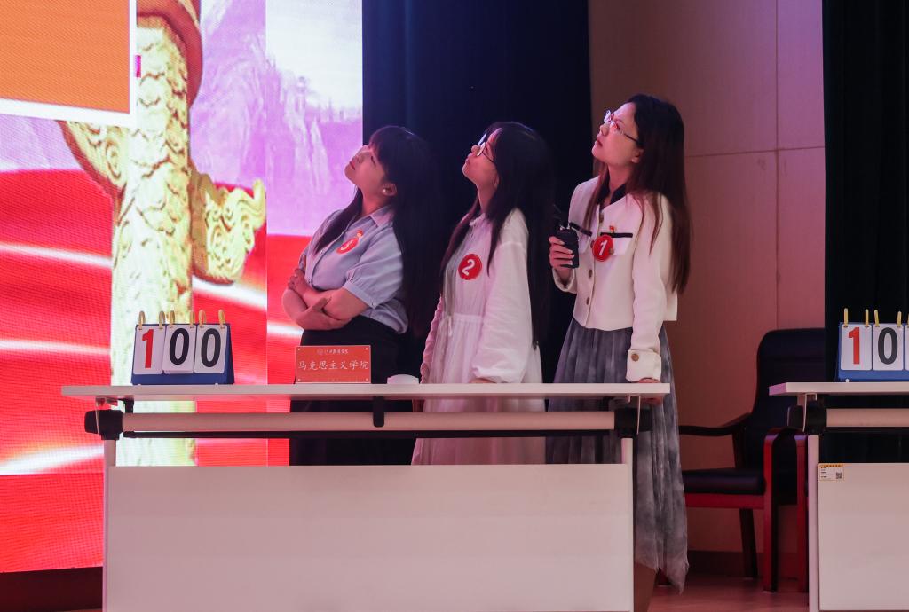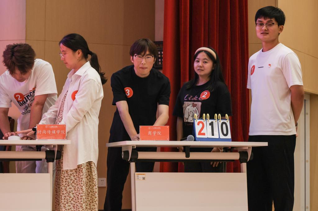竞答赛决赛中,比赛现场气氛热烈,参赛选手以饱满的热情、昂扬的斗志、团结的作风、拼搏的精神,为我们献上了一场紧张激烈、精彩纷呈的比赛。经过精彩而激烈的角逐,最终商学院代表队荣获一等奖,人文学院、大数据学院代表队荣获二等奖,服装设计学院、服装工程学院、时尚传媒学院、机关党委、马克思主义学院、艺术设计学院代表队荣获三等奖,人文学院黄可欣、商学院钱洋新、服装设计学院唐昌华荣获“最佳选手”荣誉称号。商学院、服装设计学院、大数据学院荣获优秀组织奖。
