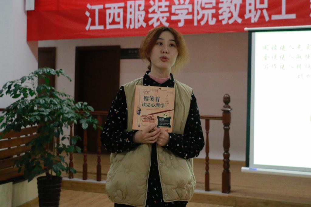 读书分享会上,李金燕等在座教职工依次围绕《明清时期金溪浒湾雕版印刷研究》《美好时代的背后》《傻笑着读完心理学》《我与地坛》《被讨厌的勇气》《一个人的朝圣》、《新时代大学生艰苦奋斗精神教育研究》《蛤蟆先生去看心理医生》《杀死一只知更鸟》《时间简史》《方与圆》等自己所读的书籍,结合自己的快乐阅读经历,从不同角度畅谈了自己读书的所思所想、所感所悟;他们或叙述书中的精彩情节,或阐述读书的心得体会,或畅谈书中的奇思妙想......尽情分享读书带来的收获与喜悦,充分展示我校教职工的好学、上进,以及书籍对他(她)们教书育人工作带来的改变。