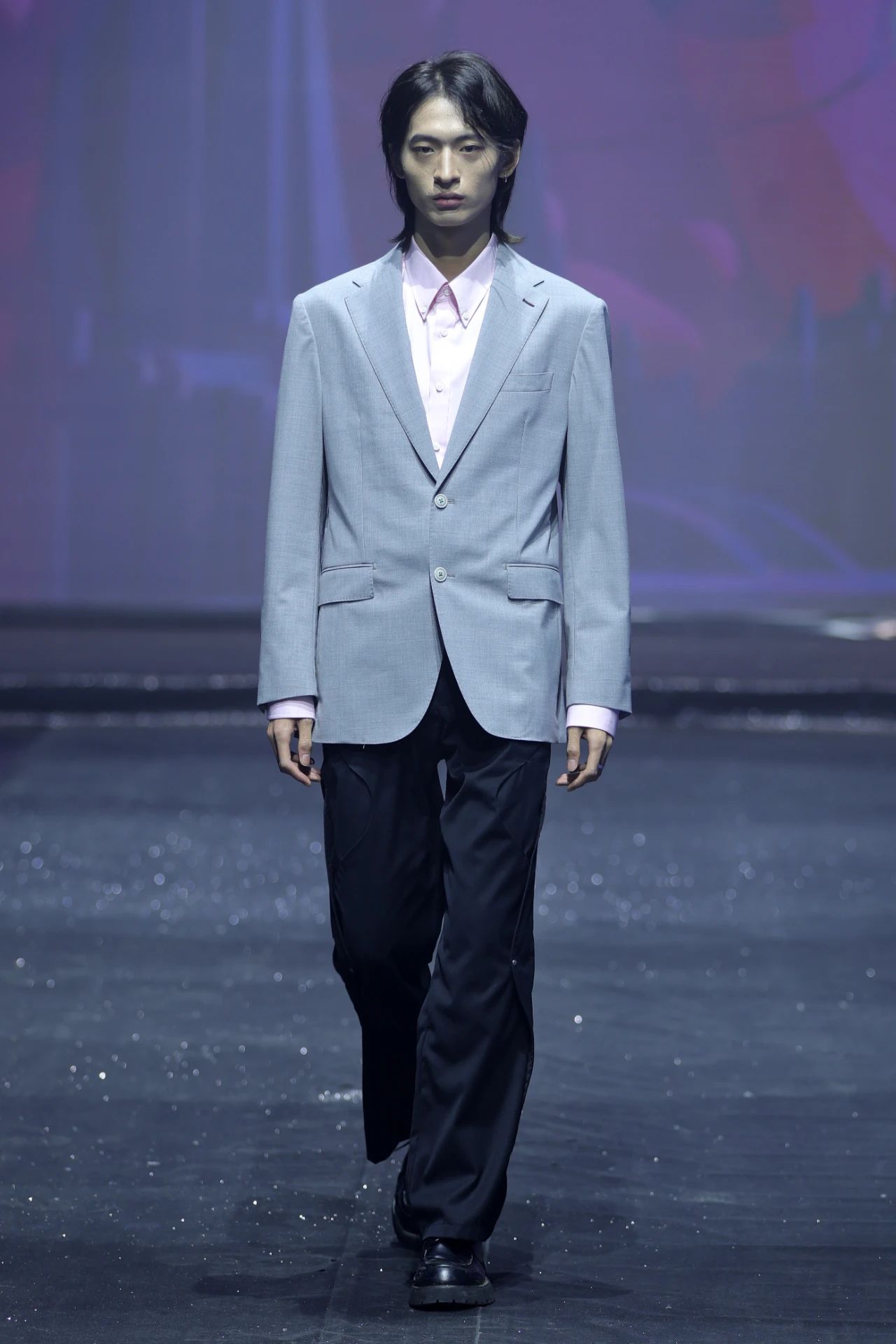 此次发布会汇集了东蒙&蔻莳男装高级定制产业学院的优秀作品,我们展示了多种不同的风格和款式,包括西装、夹克、衬衫、裤子等。服装呈现出未来主义的元素,如科幻感的设计、高科技材料的运用以及对未来社会的想象。同时,通过可持续发展的理念,展现对未来环境和社会的关注和呼吁。每一件服装无论是剪裁、缝纫还是面料选择,都体现了男装高级定制的品质和工艺水平。这种精湛的工艺为服装赋予高贵的气质和优雅的品味,展现了我们的设计师们的才华和创造力。