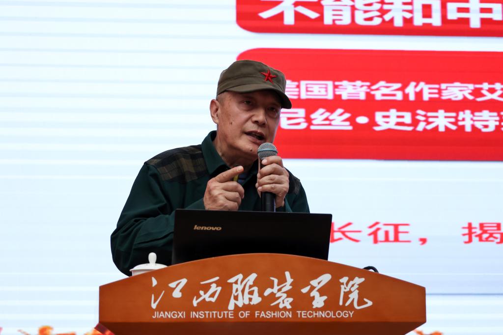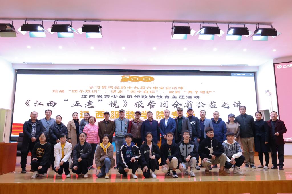 省教育厅关工委副主任李国祥在讲话中指出,在建党百年之际,全国上下深入学习贯彻十九届六中全会精神之际,省教育厅关工委《江西“五老”说》报告团三位老同志给同学们作报告,讲述在党的百年奋斗中革命先烈们为革命不畏艰难险阻、不怕流血牺牲的红色故事。以此传承红色基因,赓续红色血脉,助力学校落实立德树人根本任务,努力培养心怀“国之大者”、争做“国之大才”、堪当民族复兴大任的时代新人。新时代中国青年要以实现中华民族伟大复兴为己任,增强中国人民的志气、底气、骨气,不负时代,不负韶华,不负党和人民的殷切希望。他对在座同学提出期望:“各位同学从五湖四海来到江西服装学院这所有专业特色的大学、有专业贡献的大学、有家国情怀的大学,更应该在这里用自己美好的青春去奋斗,扛起民族复兴的大任。”