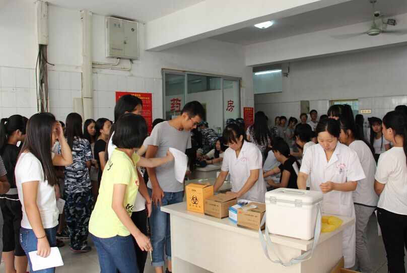 服装报讯(记者 赵冉冉 摄影 左正鹏)8月30—31日,根据国家教育部颁发的《学校卫生工作条例》中关于做好在校学生健康监测的要求以及学校新生军训的工作安排,我校新生入学体检工作在校医务室全面展开。