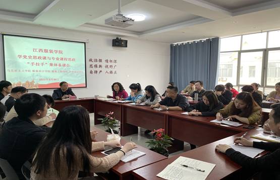 新闻中心讯(马克思主义学院供稿)为认真学习贯彻习近平总书记在党史学习教育动员大会上的重要讲话精神,积极推进党史学习教育“三进”工作,3月30日下午,马克思主义学院协同服装设计学院、服装工程学院、艺术设计学院举行了学党史思政课与专业课程思政“手拉手”集体备课会。校党委书记陈付龙出席并讲话。相关学院的领导及骨干教师代表40余人参加会议。会议由马克思主义学院院长周丽琴主持。