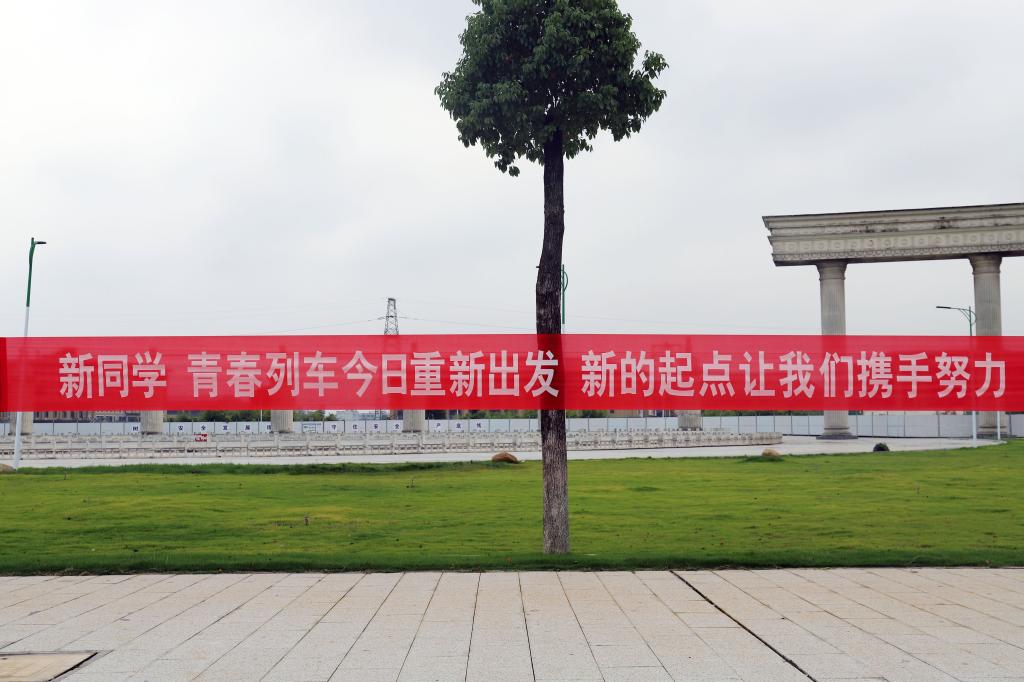 校园主干道上,色调明艳的彩旗整齐排列;一句句真挚的美好祝愿,凝练成一条条迎风招展的横幅;从校门口到报到点,沿路的地面和路旁都设有醒目标识,为来往的新生和家长指引方向;“江服信封”“我爱江服”“江服欢迎你”等造型新颖的雕塑展板引得新生和家长纷纷驻足,拍照留念。学校宣传部精心准备的迎新标语和精美的展板,营造了朝气蓬勃的迎新氛围,生动展现了校园文化和人文内涵底蕴,在开学第一天为校园点亮了美丽的风景线。