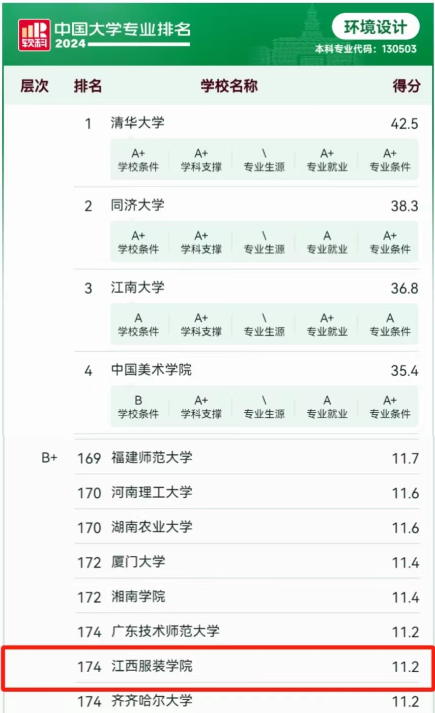 新闻中心讯 近日,高等教育专业评价机构软科发布“2024软科中国大学专业排名”,江西服装学院服装与服饰设计专业在全国排名第39位、环境设计专业在全国排名第174位,均居B+层次,服装设计与工程专业在全国排名第25位。
