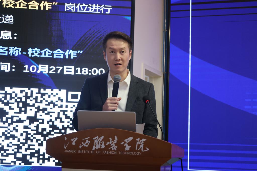 波司登集团代表,人力资源中心总监吴晓明先生从我校背景与波司登的行业发展方向进行阐述。江西服装学院作为高水平应用型大学,建校以来的教学成果不仅获得教育界的认可,也向行业输送了大量的人才。波司登作为国内羽绒服领军品牌,专注羽绒服45年,品牌价值连续五年位列行业第一,目前有近百名江服学子供职于波司登的各个部门。而对于学生的发展方向,集团内部也有完整的发展体系,人才发展理念:“让想做事者有机会,让能做事者有舞台,让做成事者有回报”,更有为优秀应届毕业量身打造的“雏鹰计划”,帮助学生在事业上稳步提升。