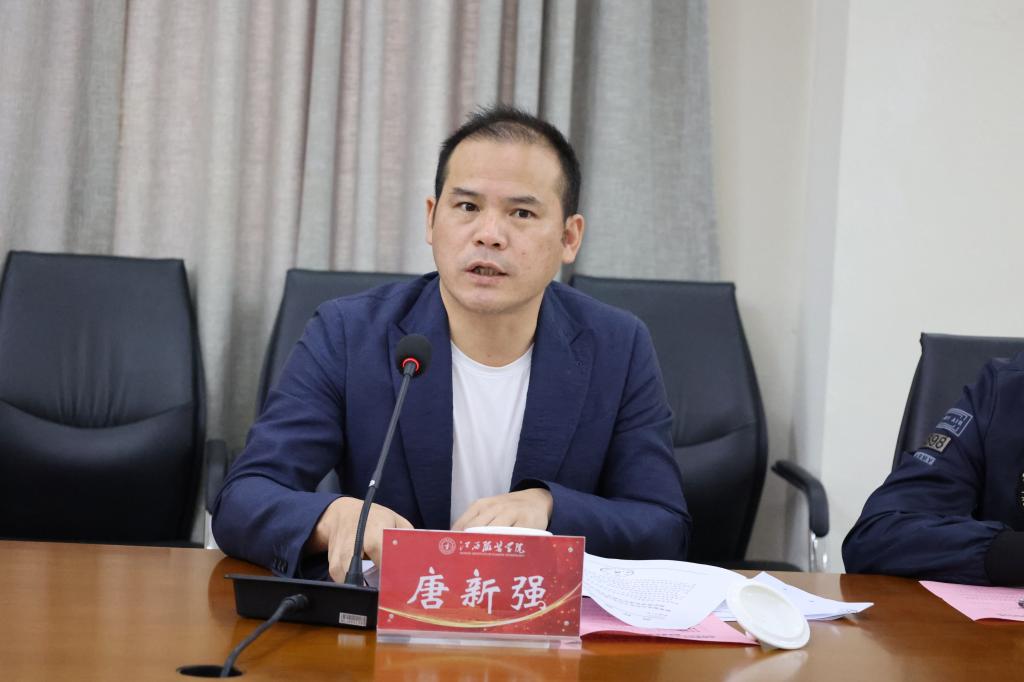 党委副书记唐新强传达学习了党的十九届七中全会精神和教育部办公厅印发的《党的二十大重要保障期维护教育系统安全稳定专项方案》文件要点。