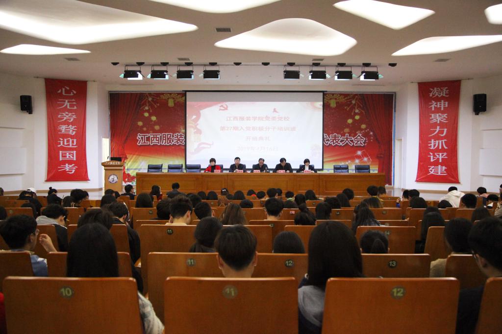 服装报讯 4月16日下午,我校第27期入党积极分子培训班开班典礼在思贤楼三楼报告厅举行。校党委副书记、党校校长高建国,党委委员、宣传部部长彭波,党委委员、组织部部长陈翠娥,党委委员、学工部(处)部(处)长张建荣,党校副校长、思政部副主任娄英英,各学院党总支副书记,各学院学生党支部书记和组织员,以及第27期入党积极分子培训班全体学员共计400余人参加了开班典礼。党校副校长、思政部副主任娄英英主持了开班典礼。