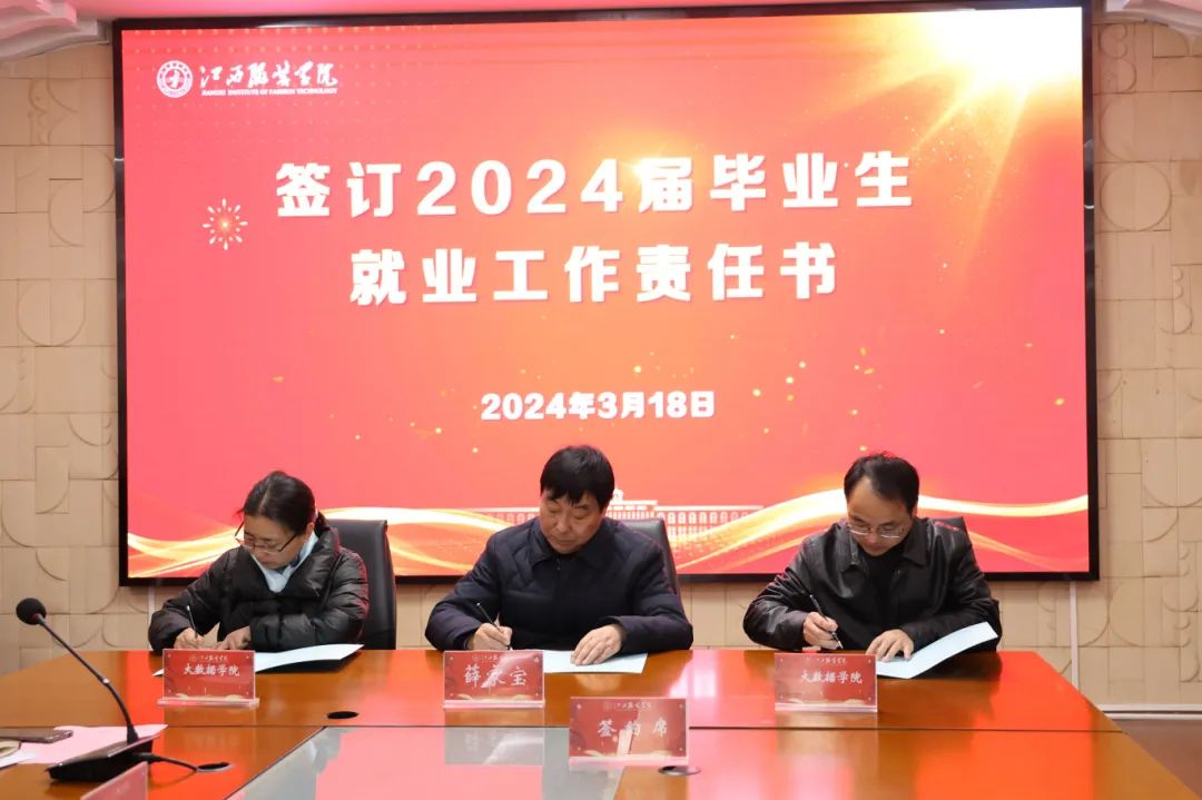 会议最后,校长薛家宝同各学院签订2024年度毕业生就业统计工作责任书并进行总结讲话,讲话中对2023年就业工作中取得的成绩和各二级学院在就业工作中的特色做法和当前亮点工程给予肯定,向奋斗在就业一线的教师表示感谢。他强调,要深入贯彻两会中关于就业工作的指示精神,进一步提高政治站位,把促进高校毕业生高质量充分就业摆在教育强国建设的战略高度通盘考虑,把确保高校毕业生就业大局稳定作为稳就业工作的重中之重。