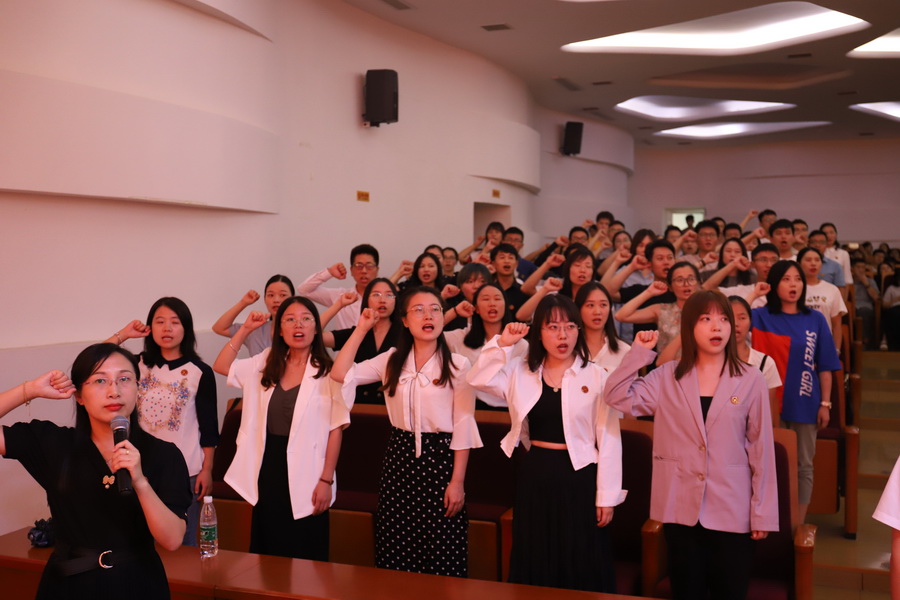 师德标兵、服装工程学院教师章华霞和教学标兵、军事体育部教师徐红作为教师代表发言。她们表示一定会按照新时代的要求,继续发扬爱岗敬业的优良作风,成为志存高远、师德高尚、教艺精良、严谨笃学、与时俱进的新时期优秀的教师,为学校的发展贡献力量。“我志愿成为一名人民教师,忠诚党的教育事业,遵守教育法律法规,履行教书育人职责,引领学生健康成长……”校长助理曹华带领2020年新入职教师举行了入职宣誓,近50名新教师庄严宣誓,许下做“四有”好教师,为教育发展、国家繁荣和民族振兴努力奋斗的庄严承诺。大会在奏唱《团结就是力量》的歌声中圆满结束。