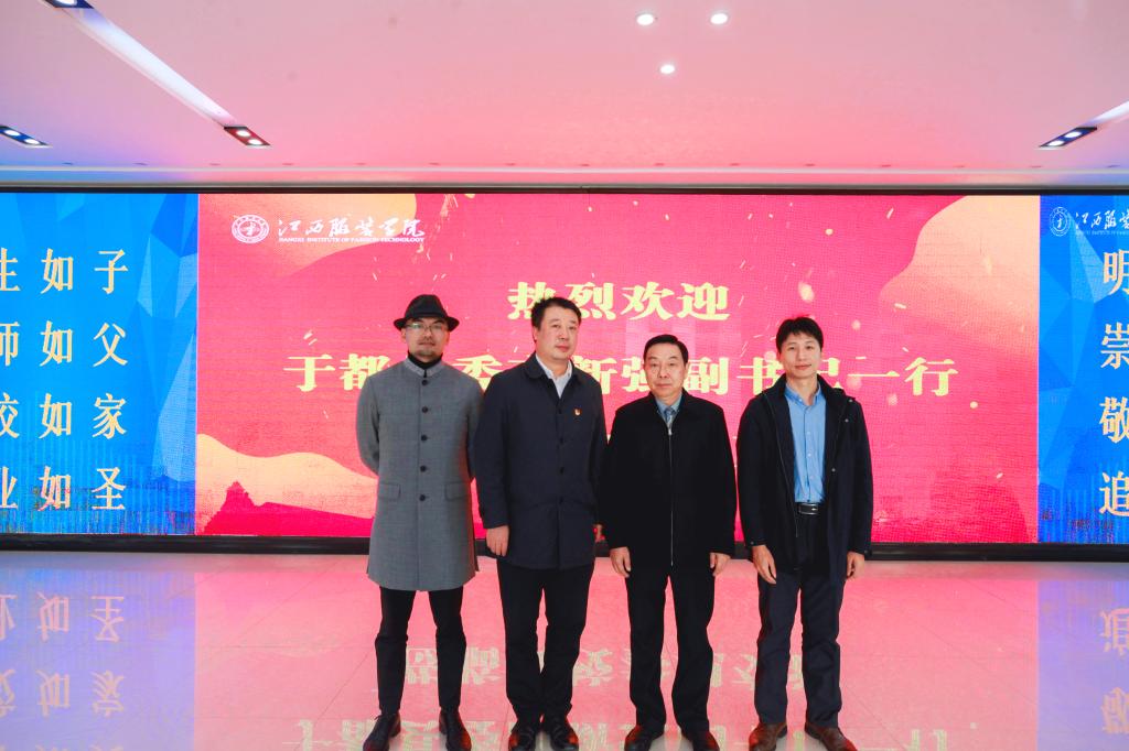 (撰稿:产教服务中心)为贯彻落实《国务院关于新时代支持革命老区振兴发展的意见》(国发〔2021〕3号)和《江西省赣南等原中央苏区振兴发展领导小组关于延续省内高等院校及科研机构对口支援赣南等原中央苏区的通知》(赣苏区领〔2021〕1号)文件精神,把江西服装学院的人才优势、研发优势、成果优势与于都资源优势、产业优势、区位优势紧密对接,共同推进于都县区域经济更好的发展。10月26日,于都县委高新强副书记、于都发改委王鹏程副主任与我校校长薛家宝、副校长易城在行政楼二楼会客室进行交流与座谈。