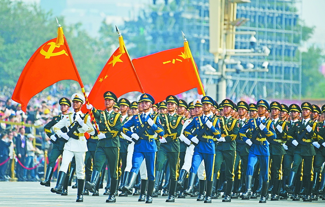 阅兵仪式开始。习总书记乘坐红旗检阅车依次检阅了气势澎湃的各受阅方队,庄严的军容、整体的口号,尽显人民军队听党指挥、能打胜仗、作风优良的光荣传统。分列式开始,15个徒步方队、32个装备方队和11个空中梯队依次通过天安门,以整齐的队容,饱满的精神、高昂的士气,接受祖国和人民检阅。随后,由10万群众、70组彩车组成36个游行方阵,以欢快的歌曲、动人的舞姿、灿烂的笑容,向祖国母亲的生日献上热情的礼赞和美好的祝愿。