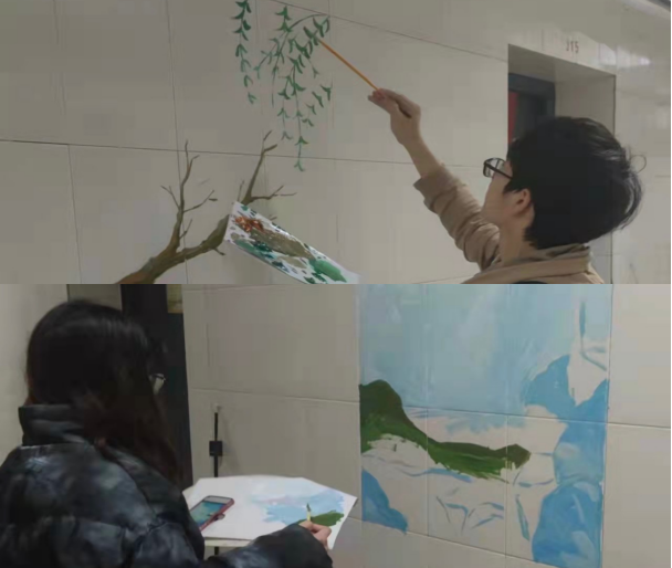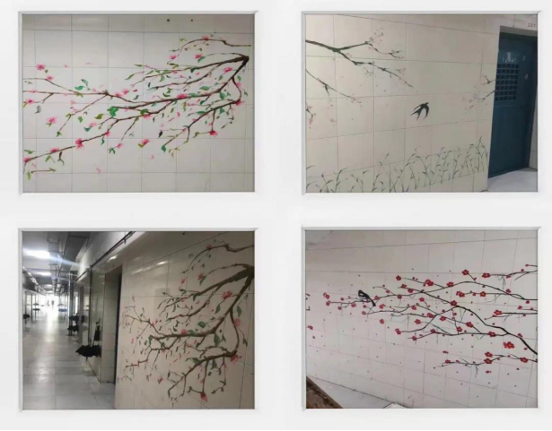 赏一抹鲜妍,嗅一缕清香,春便在身边盛开。虽然疫情阻挡了我们春游的脚步,但不能停止我们对春天的向往。在疫情校园封闭的日子里,学校学生社区服务中心组织同学在宿舍楼道墙上彩绘“春天”,桃花、柳树、樱花在同学们的笔下栩栩如生。琳琅满目的美术画作装点了原本单调的白墙,仿佛进入了画展现场。宿舍同学说:“打开小屋的门,桃花的粉,樱花的白,柳树的绿映入眼帘,看到这些美景,一天的疲惫与烦恼都已散去,留在心间的只有温馨与浪漫。”文艺其从,启智润心。美是时代的召唤,以美化人,不是为了让少数人掌握“一技之长”,而是为了让所有青年学子在自然之美、环境之美中丰富思想、塑造品格、汲取力量!