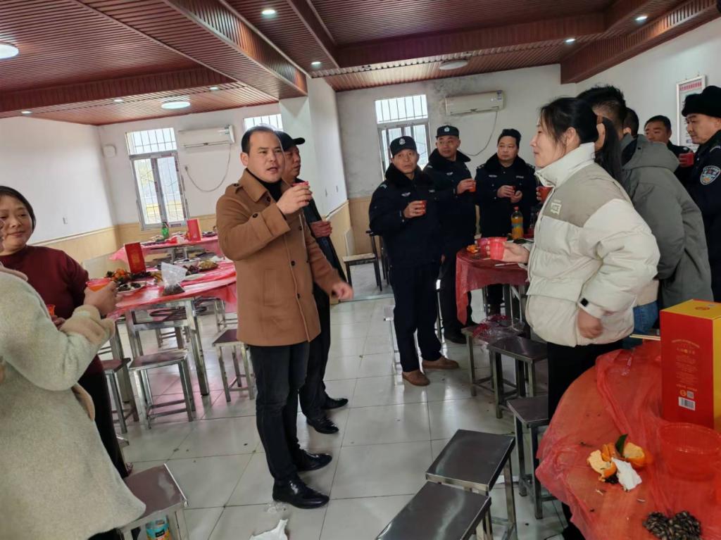 唐新强代表学校理事会、校党委、校行政向春节期间留校工作一线的全体值班人员拜年并共进团圆饭。他指出,2023年全校教职工同心同德,团结奋进,圆满完成了年初制定的各项工作目标和任务,取得了一系列的成绩。在欢乐祥和的气氛中,唐书记与大家边吃边聊,畅谈各地习俗,分享日常点滴,互致真挚祝福,现场笑声不断,欢乐喜庆祥和。
