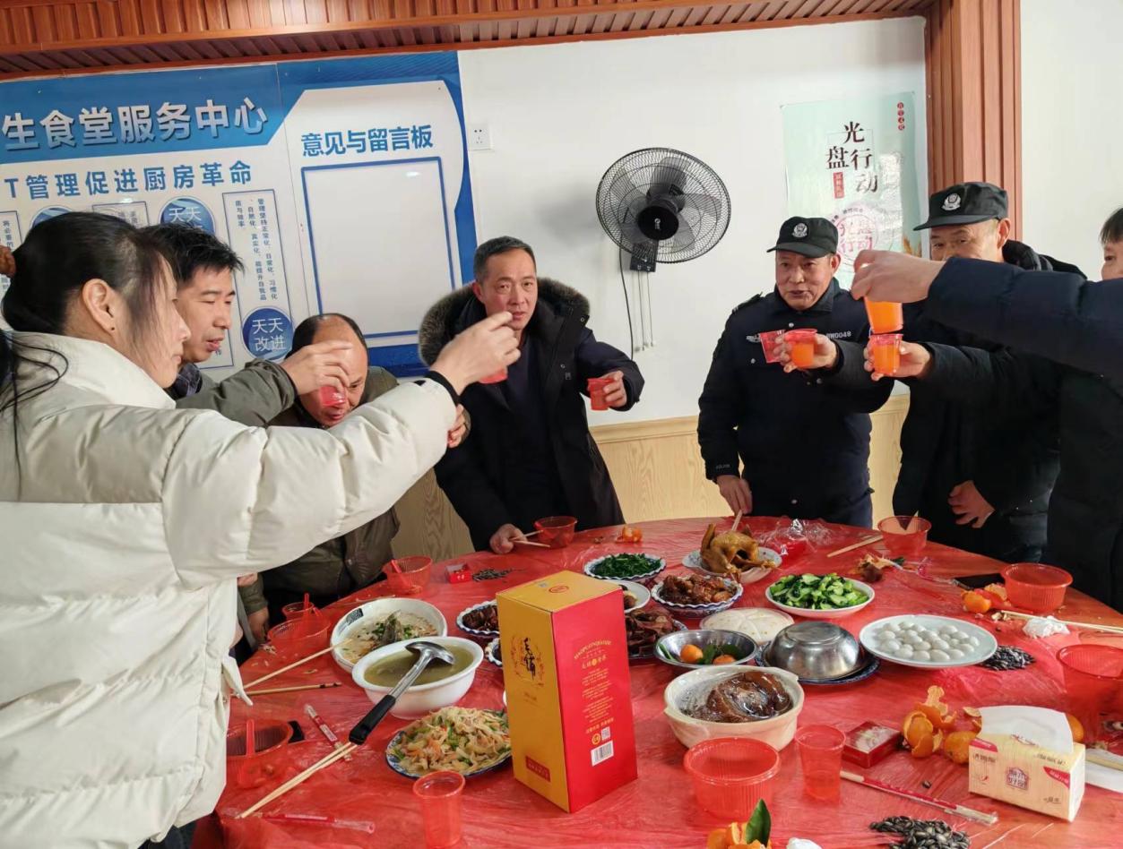 校党委副书记唐新强,工会、后勤保障处等相关负责人与50余位留校值班教职工齐聚一堂,欢声笑语,共进丰盛美味的年夜饭,共度新春佳节。