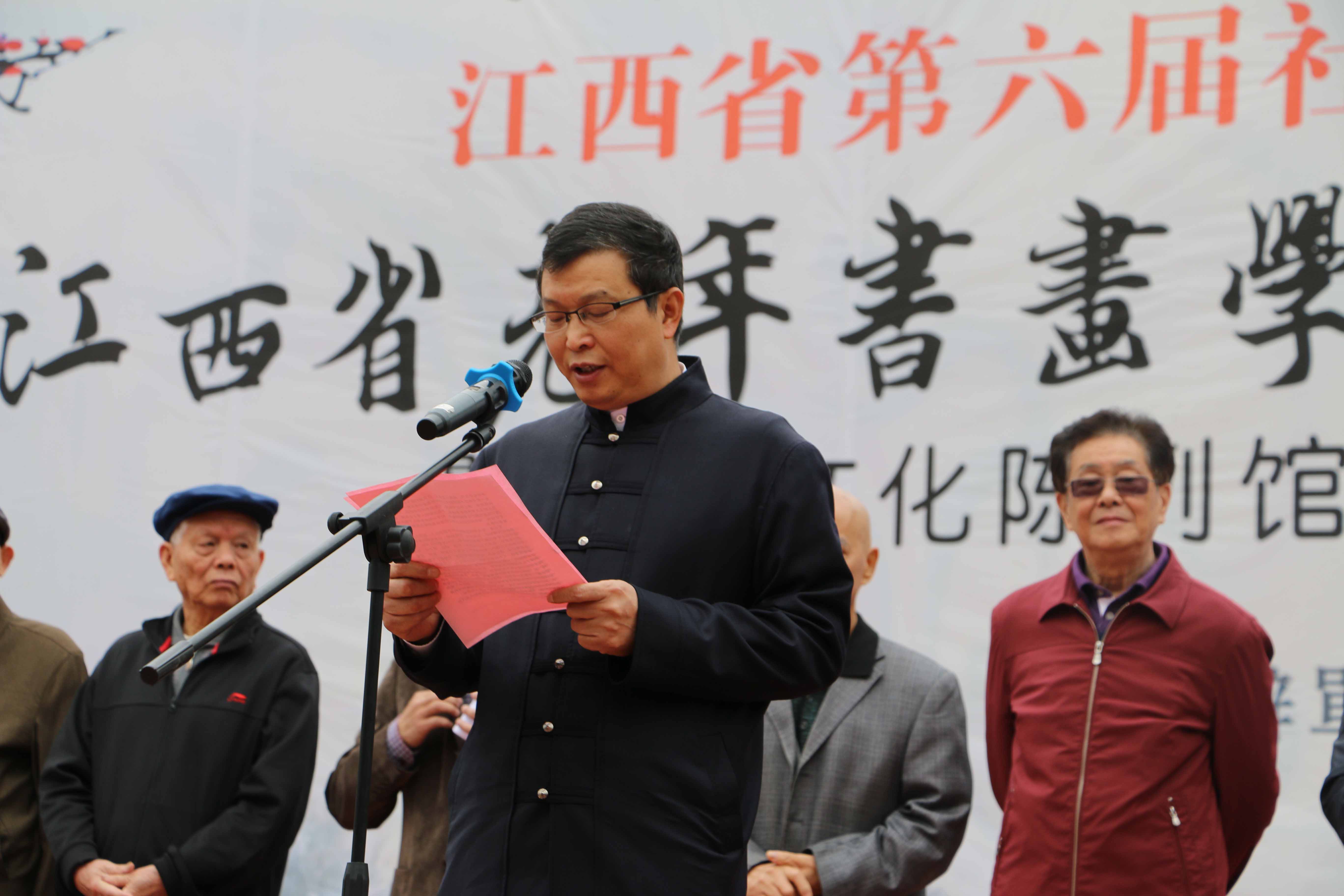首先,江西服装学院校长陈万龙博士致辞,他代表江西服装学院对这一汇集了全省老艺术家书画艺术成就的精彩展览在我校举办表示最热烈的祝贺,对在百忙之中参加本次活动的各位领导和嘉宾表示最衷心的感谢,对各位老领导、老艺术家为我校师生送来文化艺术盛宴表示最诚挚的感谢。他说,在学校二十多年的办学历程中,始终得到省委、省政府的亲切关怀,特别是万学文副主任、孙刚副省长等领导多次来校调研指导,既给予我们身处困境时的鼓励鞭策,又有发展关键时刻的支持帮助,是领导的关怀成就今天江西服装学院规范办学、特色发展的新局面,我校将谨记孙省长“三定”办学思想,为把学校建设成有特色、高水平、应用型高等学府不懈努力!