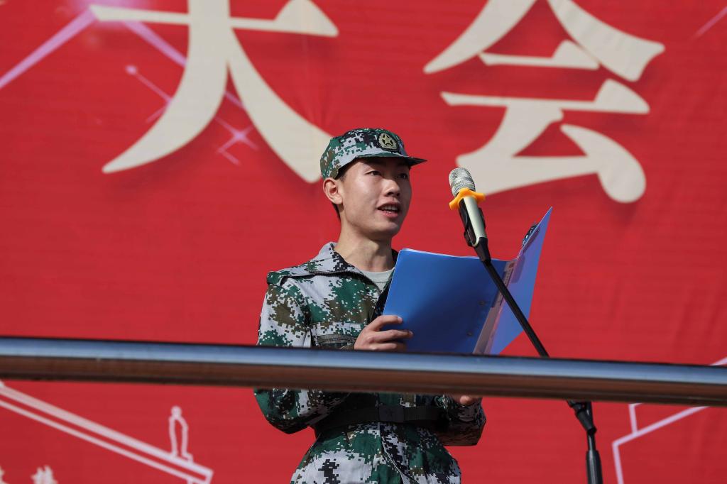 校学生工作部(处)长、武装部副部长胡伟作动员讲话。他指出,“加强国防教育,增强全民国防观念”是党提出一项事关国家兴衰的战略性任务,军训,是大学生进入大学的第一必修课,是培育和塑造国防意识和爱国精神的重要一步,希望同学们以军训为契机,磨练意志、淬炼自我,为新的人生阶段开好头,起好步。他向同学们提出三点要求:一要转变角色,顽强拼搏,时刻以一个军人的标准严格要求自己,以饱满的热情投入军训,升华意志,锤炼品格;二是遵纪守规,团结互助,严格遵守军训要求,最快的速度适应军训节奏,自觉融入集体,相互扶持,共同成长;三是科学参训,确保安全,在接下来的军训中,要时刻紧绷安全这根弦,注重科学训练,劳逸结合,确保军训平安顺利。