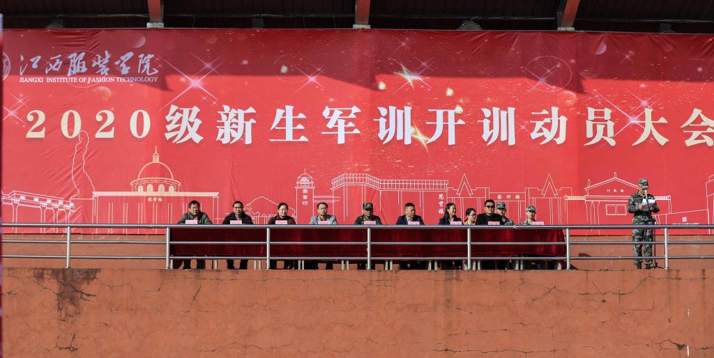 新闻中心讯:秋风习习、旌旗猎猎,队伍整齐,军歌嘹亮。10月23日清晨8点30分,江西服装学院2020级新生军训开训动员大会在运动场举行。校党委副书记、武装部部长高建国,校学生工作部(处)长、武装部副部长胡伟,各学院党总支(副)书记,全体教官,辅导员、班主任、班主任助理和2020级参训新生参加了大会。军事体育部副主任鲍鹏主持动员大会。