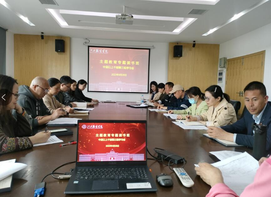 新闻中心讯 4月28日下午,我校中层以上干部学习贯彻习近平新时代中国特色社会主义思想主题教育专题读书班举行分组研讨。校党委书记陈付龙主持并对分组研讨提出要求,他强调,全校中层以上干部要认真研读学习贯彻习近平新时代中国特色社会主义思想主题教育指定书目,深入学习习近平总书记视察江西重要讲话精神以及关于教育的重要论述、重要讲话和重要指示批示精神,不断增强学习贯彻习近平新时代中国特色社会主义思想的政治自觉、思想自觉和行动自觉,努力做到以学铸魂、以学增智、以学正风、以学促干,为建设特色鲜明的高水平应用型大学而努力奋斗。