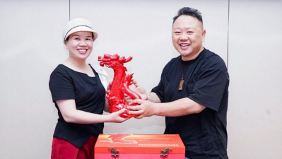 95级国际时装设计专业校友王少文(现为景德镇长物居陶瓷文化发展有限公司创始人)向福建校友会赠送了亲自烧制的《祥龙腾飞》,寓意江服校友情谊永流传。