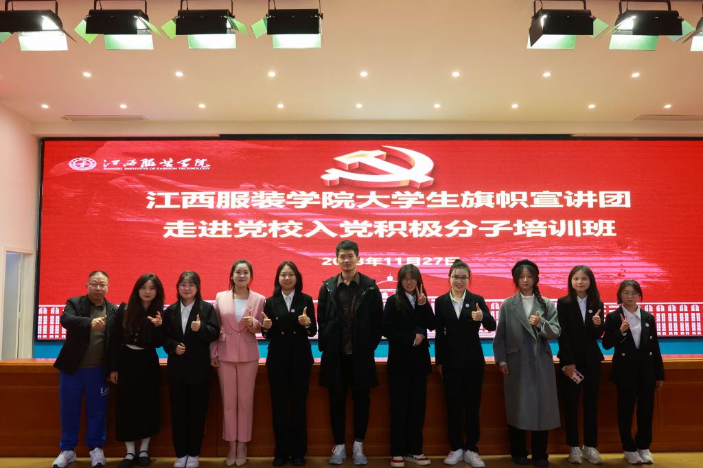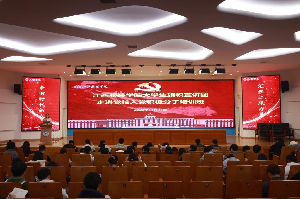 新闻中心讯(人文学院/洪金金 记者团/谭婧炜 李清垚 刘北辰 摄影/黄梓翔 廖鑫) 为深入学习宣传贯彻党的二十大精神,深刻展示新时代的辉煌成就,充分发挥朋辈引领教育功能,11月27日晚,江西服装学院大学生旗帜宣讲团成员肖丽萍、汪玉涵、王燕、杨鑫渝、高仪、邓冬梅、徐慧轩、谈云佳走进江西服装学院党校第36期入党积极分子培训课堂,分别围绕革命精神、文化自信、教育高质量发展以及青年担当等主题,以青年视角、青年语言对党的二十大精神与同学们进行分享。