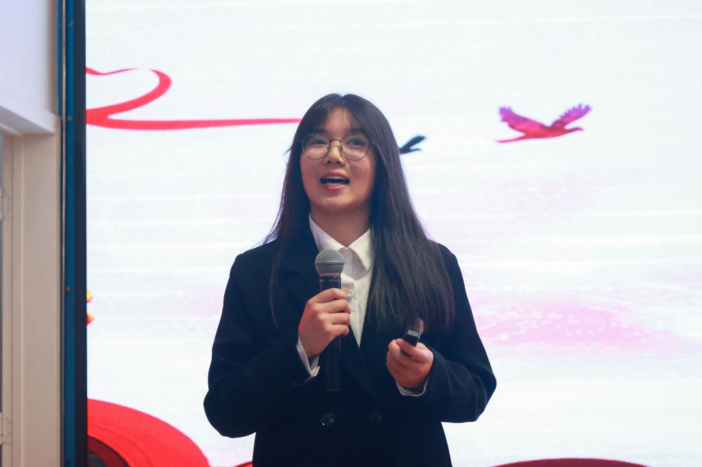 杨鑫渝以《建设高质量教育体系,推动高质量发展》为主题,提出江服青年应当把握时代命题,提高专业素养以适应时代要求,将个人理想与国家高质量发展战略相结合,用青春力量助推高质量发展。高仪以《不忘!不止步!》为主题,号召广大青年点亮我们每个人心中的星星之火,热爱祖国,砥砺前行,那一点星星之火便可以燎原!王燕以《学习党的二十大,共同谱写新篇章》为主题,肖丽萍以《做新时代好青年,共同谱写新篇章》为主题,说明当代中国青年是与新时代同向同行,共同前进的一代,生逢盛世,肩负重任。