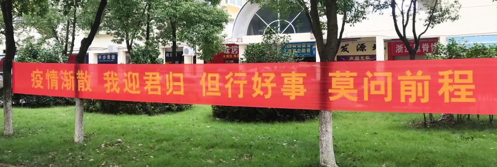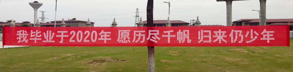 校园里,“欢迎回家”“2020毕业快乐”“从江服出发,向祖国报到”“无论你走多远,离开多久,你永远是母校的牵挂”一个个彩色立牌和条幅,营造了温馨的毕业氛围。久别的学生们相约着,在校园各处拍摄特殊的毕业照。