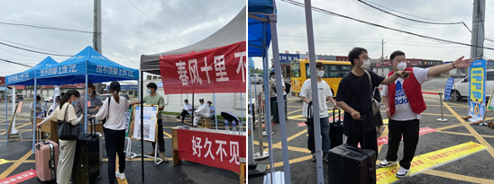 从毕业生返校首日起,各学院的辅导员和志愿者们一大早就在校门口等待毕业生返校,协助校园保卫人员一起有序引导返校毕业生们做好安全消毒、验证返校许可与健康码、体温检测、身份核验、入校登记等工作。毕业生进入校园后,引导学生们到所在学院办理手续,领取毕业证和学位证,到宿舍收拾行李。老师和志愿者们热情相迎、周到服务,为毕业生快速地办理手续,现场秩序井然。