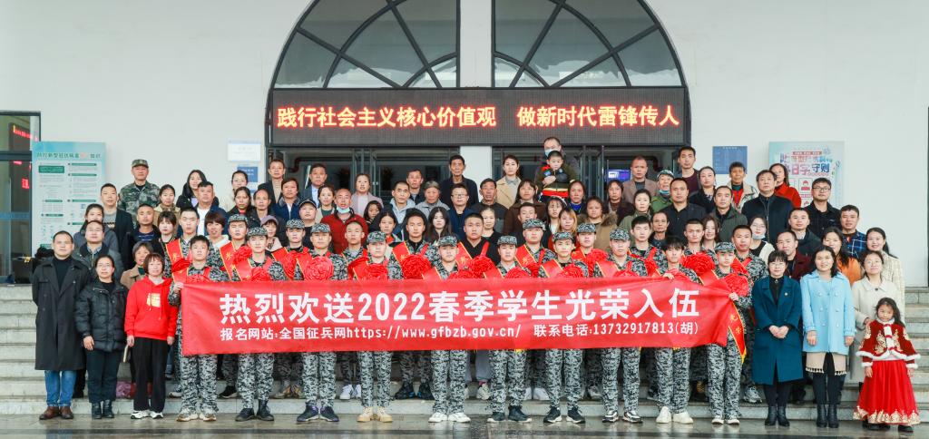 校党委副书记唐新强向光荣应征入伍的优秀大学生新兵表示热烈祝贺!向远道而来的家长表示热烈的欢迎并对家长积极送子参军、支持国防建设的行为表达崇高的敬意!对武装部工作人员及一线国防教育工作者表示感谢和亲切问候!唐新强表示,大学生应征入伍是实现中华民族强军梦的迫切需要。我国正处于实现中华民族伟大复兴的关键时期,大学生参军入伍,使命光荣,于国、于家、于校、于个人,更是意义重大而深远。他从冬残奥会开幕式,两会的召开,疫情肆虐世界,世界多地笼罩在战争的阴云下等时事热点出发,讲述中国的发展变化和作为中国人的幸福感和自豪感,以此告诉入伍新兵珍惜身穿戎装的机会,做好自己的事,勉励他们在校就认真学习、读书,在部队就要刻苦训练、勤练本领,做一个对自己负责的人。要在绿色军营里历练成长为有思想、有本事、有血性、有品德的新时代革命军人,在实现中国梦、强军梦的伟大实践中作出应有贡献,让家人为你骄傲,让母校为你自豪。