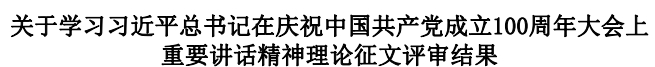 据悉,根据全省教育系统党史学习教育领导小组《关于深入学习贯彻习近平总书记在庆祝中国共产党成立100周年大会上重要讲话精神的通知》(赣教学组发〔2021〕20号)精神,全省教育系统党史学习教育领导小组办公室组织开展了学习习近平总书记在庆祝中国共产党成立100周年大会上重要讲话精神理论征文比赛,在全省各高校组织开展征文活动,经单位推荐、知网查重、专家评审等环节共评选出60篇获奖论文,其中一等奖10名、二等奖20名、三等奖30名。