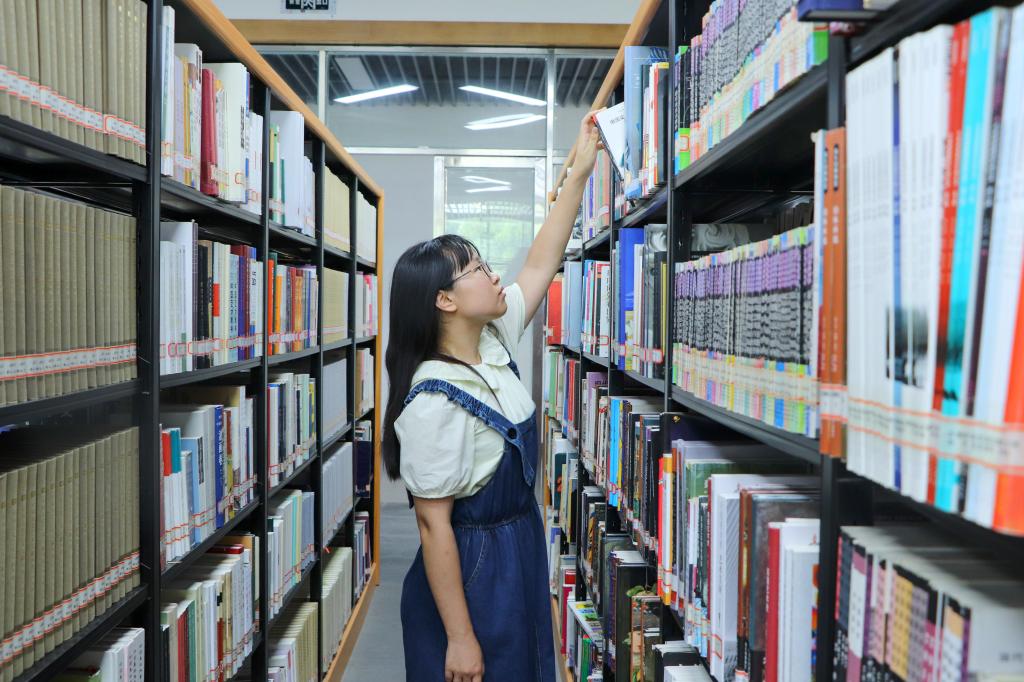 “这么多书啊!”走进了图书馆,陈喻鑫的眼睛亮了起来,丰富的藏书和宽敞明亮的环境让她赞不绝口,以后一定要经常“泡”在这里。