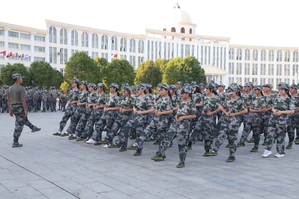 今天是军训第二天,初着戎装的同学们渐已适应训练的节奏