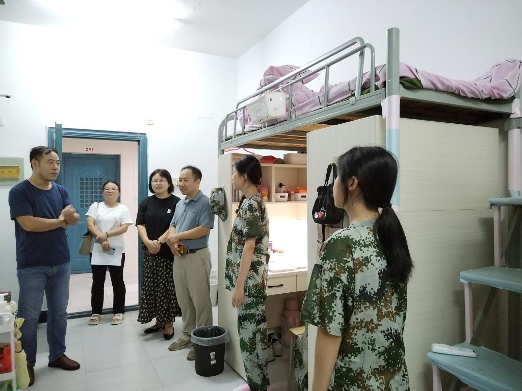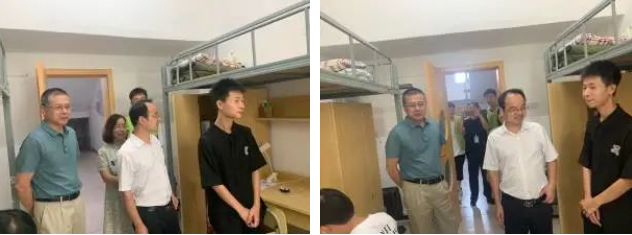 领导们的到来受到同学们热情真挚的欢迎。薛家宝校长每到一间宿舍,都仔细询问同学们,“你是哪的人?住得还习惯不?饭菜都合你们的胃口吧?对住宿环境都还满意吧?……”,尤其对外地来昌的同学表示亲切关怀,同他们拉家常,鼓励他们尽快融入新家庭、适应新生活,并在大学四年中接续奋斗,谱写江服新篇章。