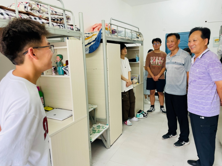 走访过程中,领导们对新同学的到来表示了热烈的欢迎,与他们进行亲切交谈,详细询问同学们来自哪里,到校报到过程是否顺利,来到学校后饮食等是否适应,并勉励同学们尽快融入集体生活。希望同学们能够珍惜大学时光,加强自我管理,科学合理进行学习规划,注重良好学习生活习惯的养成,夯实专业基础,积极参加各类学科竞赛和实习实践,练就真才实学,为实现人生梦想筑牢根基。还叮嘱同学们要注意宿舍用电和人身财产安全,强化安全意识和自我保护意识,遇到困难要及时和辅导员、班主任进行沟通。